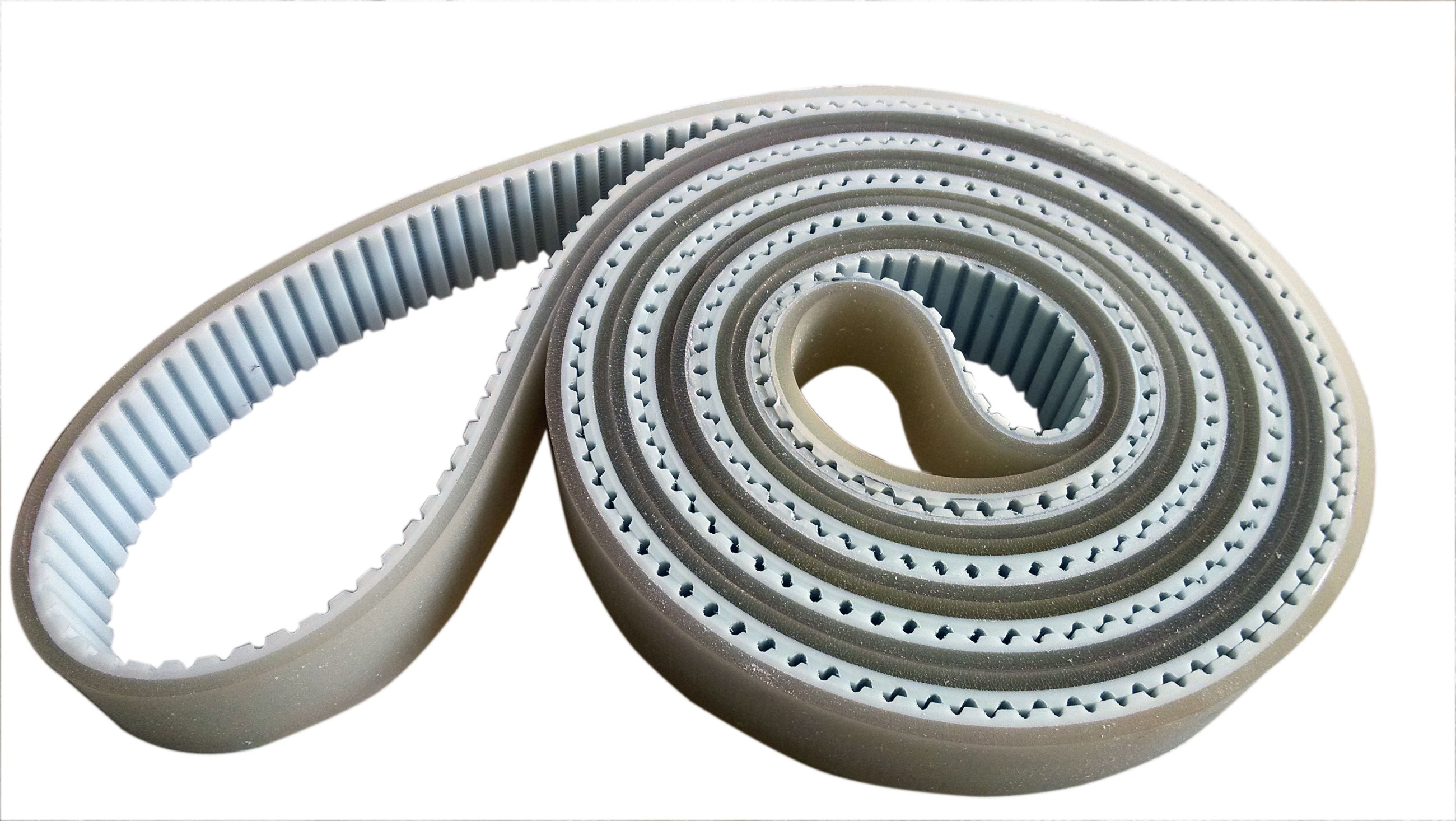 聚氨酯PU同步帶由進(jìn)口熱塑聚氨酯材料制成,具有較高抗磨損能力,各種類型鋼絲芯保證其在傳動(dòng)中仍然保持良好的運(yùn)動(dòng)能力,生產(chǎn)公差小。生產(chǎn)過(guò)程中在齒面和/或齒背加以一層尼龍以保證在特殊應(yīng)用中的運(yùn)行特殊性不變,還可在皮帶背面加厚一層聚氨酯以防止腐蝕或高負(fù)載。