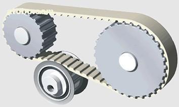 同步帶傳動(dòng)是由一根內(nèi)周表面設(shè)有等間距齒的封閉環(huán)形膠帶和相應(yīng)的帶輪所組成。運(yùn)動(dòng)時(shí),帶齒與帶輪的齒槽相嚙合傳遞運(yùn)動(dòng)和動(dòng)力,是一種嚙合傳動(dòng),因而具有齒輪傳動(dòng)、鏈傳動(dòng)和平帶傳動(dòng)的各種優(yōu)點(diǎn) 。同步帶傳動(dòng)具有準(zhǔn)確的傳動(dòng)比,無(wú)滑差,可獲得恒定的速比,可精密傳動(dòng),傳動(dòng)平穩(wěn),能吸震,噪音小,傳動(dòng)速比范圍大。結(jié)構(gòu)緊湊還適用多軸傳動(dòng),張緊力小,不需潤(rùn)滑,無(wú)污染,因而可在不允許有污染和工作環(huán)境較為惡劣的場(chǎng)合下正常工作。